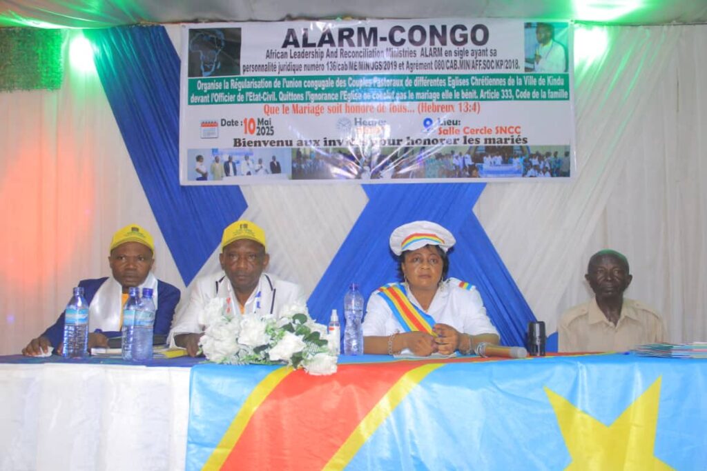 In a milestone event for family cohesion and legal empowerment, ALARM-Congo, through its Peacebuilding Department, organized a civil marriage legalization ceremony for 30 pastoral couples in the city of Kindu. Held at the National Railway Company Hall (SNCC), this transformative event responded to a growing need for clarity and legality in marital unions, especially within Christian communities.