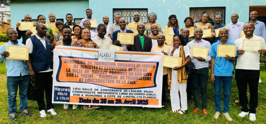 On April 28–29, 2025, ALARM-Congo’s Peacebuilding Department conducted a transformative trauma healing and peacebuilding workshop for 34 participants—comprising lawyers and church leaders—in Bukavu, South Kivu. Held at the 26th Free Methodist Church, the training addressed the growing need for psychological support in a region heavily affected by conflict and insecurity. Using the Bible and a trauma healing syllabus, facilitator Mr. Timothy Byamungu guided participants through topics such as trauma symptoms, secondary trauma, burnout, prevention strategies, and healing mechanisms. The session concluded with mental and physical exercises for self-care and detraumatization.